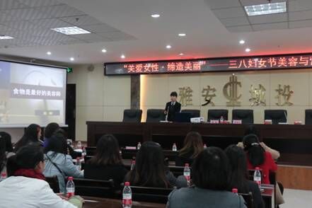 為慶!叭恕眹(guó)際勞動(dòng)?jì)D女節(jié),提高女性自我審美和保健水平,展示新時(shí)代女性積極向上的精神風(fēng)貌,3月8日上午,城投公司、雅投公司、煙草公司聯(lián)合舉辦三八國(guó)際勞動(dòng)?jì)D女節(jié)美容與營(yíng)養(yǎng)講座,專題對(duì)食物營(yíng)養(yǎng)素、水果蔬菜、酸奶三方面進(jìn)行細(xì)致講解。