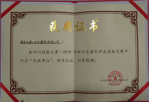 雅安成建工業(yè)化建筑有限公司榮獲“四川技能大賽——2019年四川建筑職業(yè)技術(shù)競賽優(yōu)秀組織獎(jiǎng)”