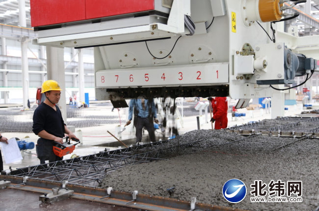4月9日,雅安成建工業(yè)化建筑有限公司(以下簡(jiǎn)稱雅安成建)PC生產(chǎn)線一片忙碌,工人與各類大型器械配合“親密無間”。生產(chǎn)流水線上,經(jīng)鋼筋綁扎、線管預(yù)留預(yù)埋、構(gòu)件混凝土澆筑等步驟后,一塊塊尚未晾干的疊合板便悄然成型!耙粔K疊合板從最初的拉伸鋼筋到最終的晾干僅需8個(gè)小時(shí)。”雅安成建技術(shù)負(fù)責(zé)人楊兵介紹,目前來自于成都周邊新建住宅的訂單讓他既幸福又痛苦,幸福是因?yàn)橛唵伪瑵M意味著發(fā)展?jié)摿薮,而痛苦是因(yàn)榕聼o法按時(shí)交付!耙?yàn)槟壳斑在試運(yùn)階段,無法開足馬力全線生產(chǎn)。”