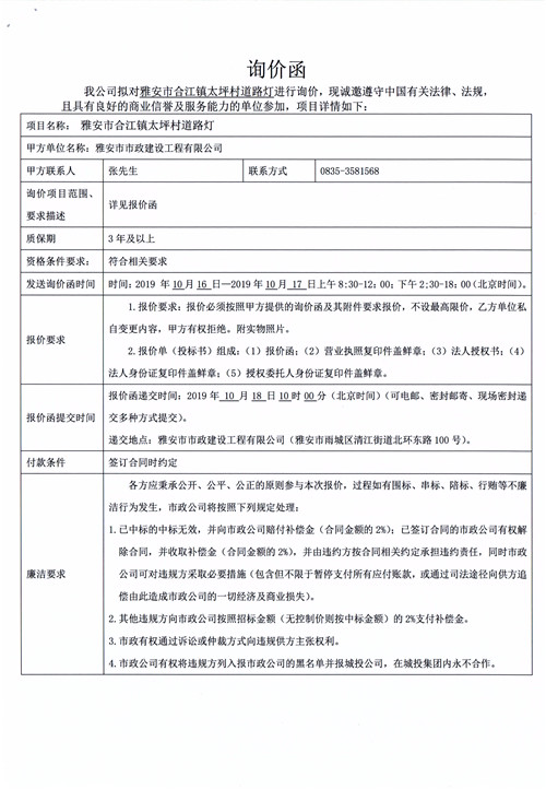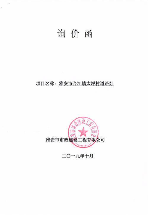 雅安市合江鎮(zhèn)太坪村道路燈詢價(jià)函