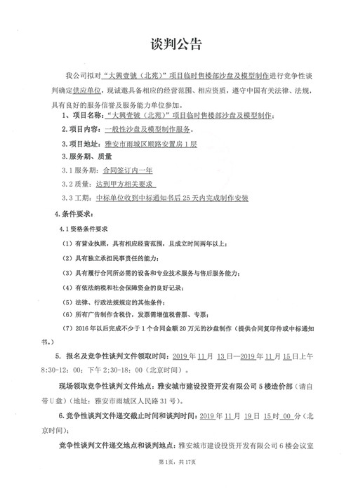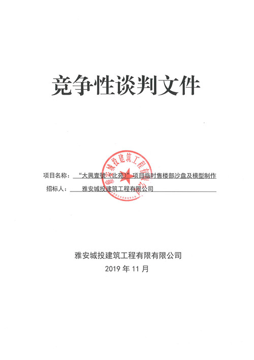大興壹號(hào)(北苑)項(xiàng)目臨時(shí)售樓部沙盤及模型制作競爭性談判公告
