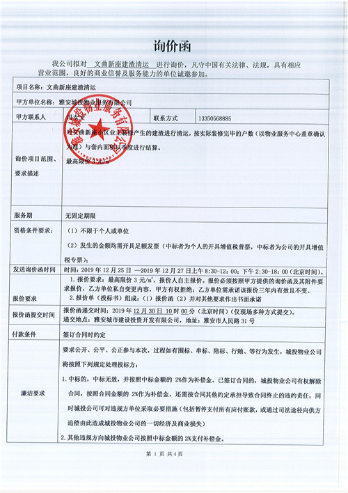 附件:文曲新座建渣清運(yùn)詢價函.doc