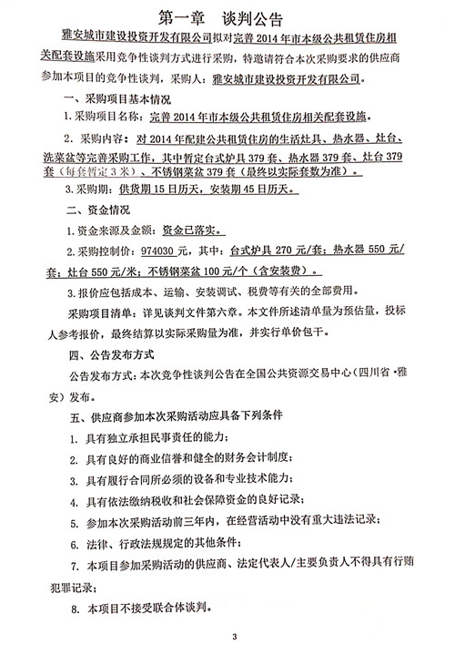 完善2014年市本級(jí)公共租賃住房相關(guān)配套設(shè)施的競(jìng)爭(zhēng)性談判公告