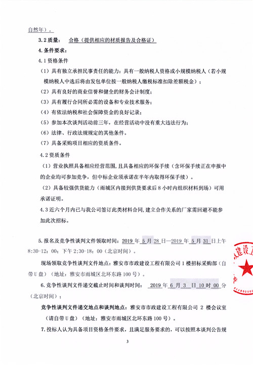 市政公司2019年度瀝青材料采購項目競爭性談判公告 (第二次)