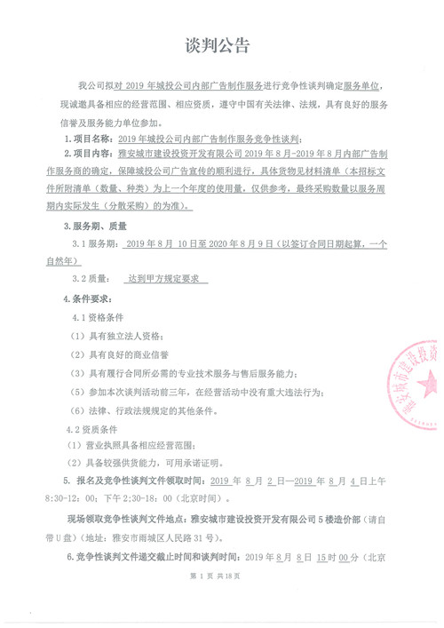 2019年城投公司內(nèi)部廣告制作服務(wù)競爭性談判公告