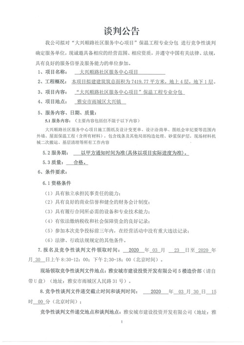 城投建工“大興順路社區(qū)服務(wù)中心項(xiàng)目”保溫工程專(zhuān)業(yè)分包競(jìng)爭(zhēng)性談判公告