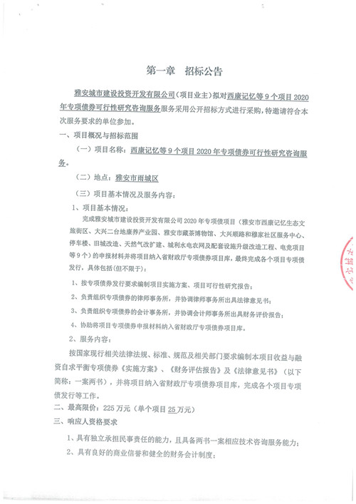 西康記憶等9個項目2020年專項債券可行性研究咨詢服務招標公告