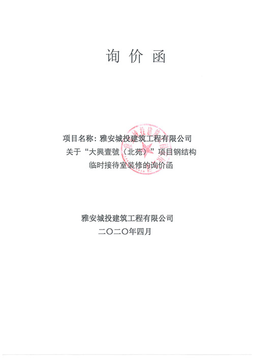 城投建工“大興壹號(北苑)”項目鋼結構臨時接待室裝修的詢價函