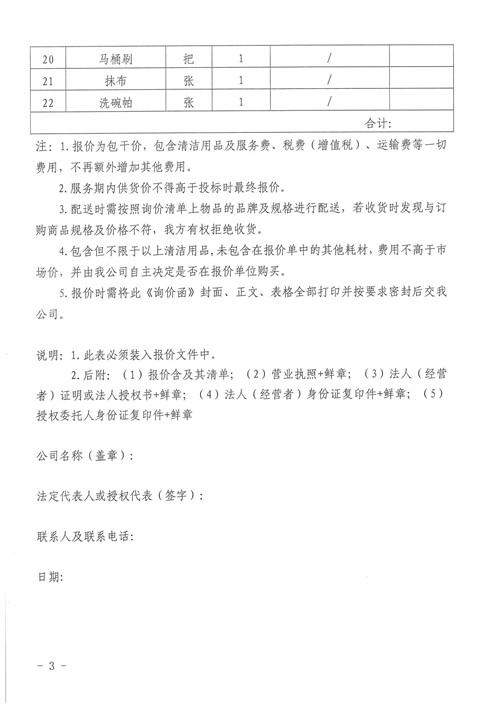 清潔用品詢(xún)價(jià)函