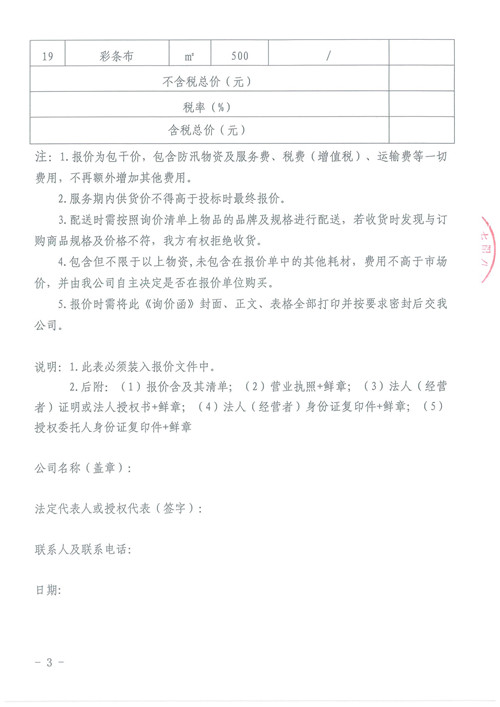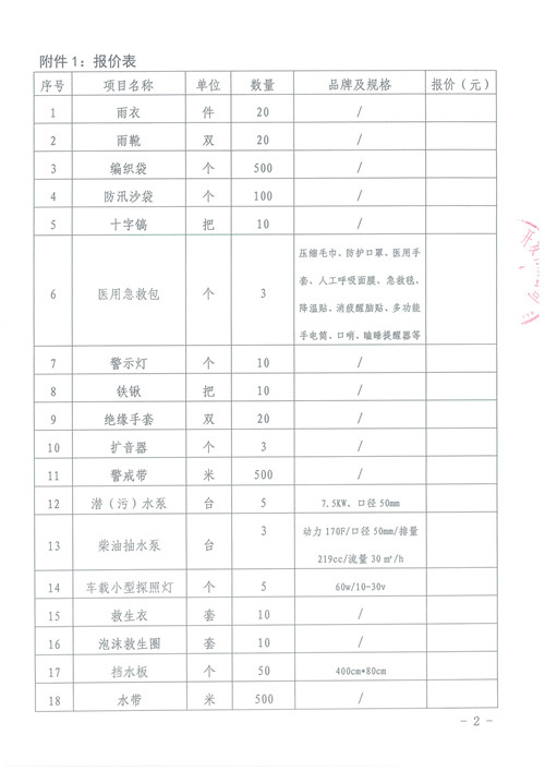 附件:防汛應(yīng)急物資詢價函