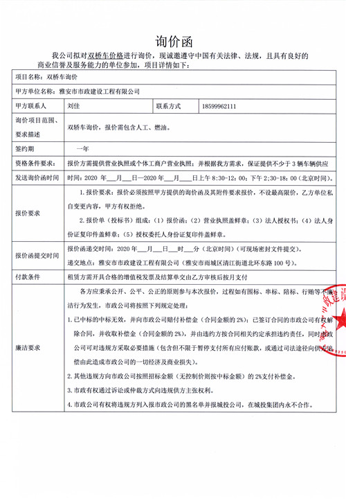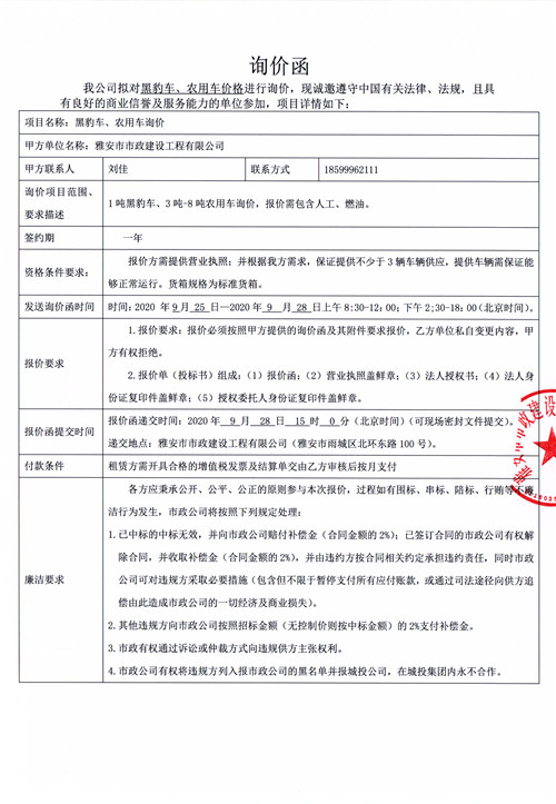 附件:詢價(jià)函(黑豹車、農(nóng)用車、雙橋車租賃)