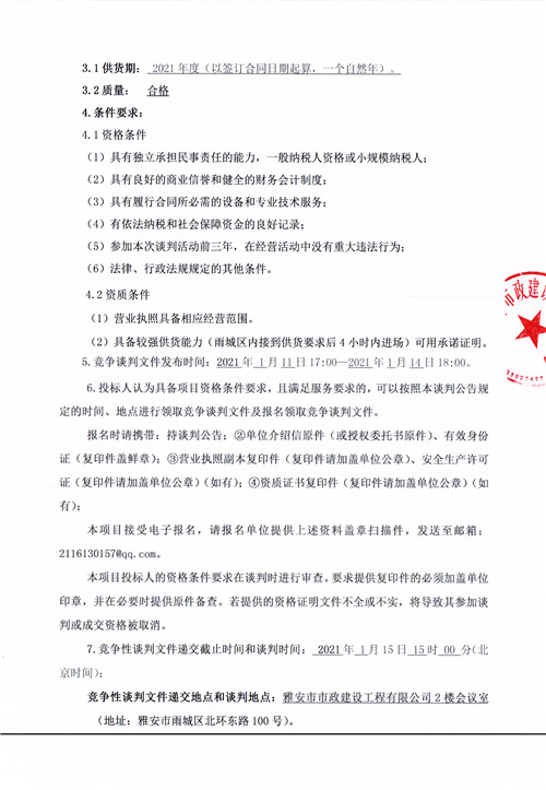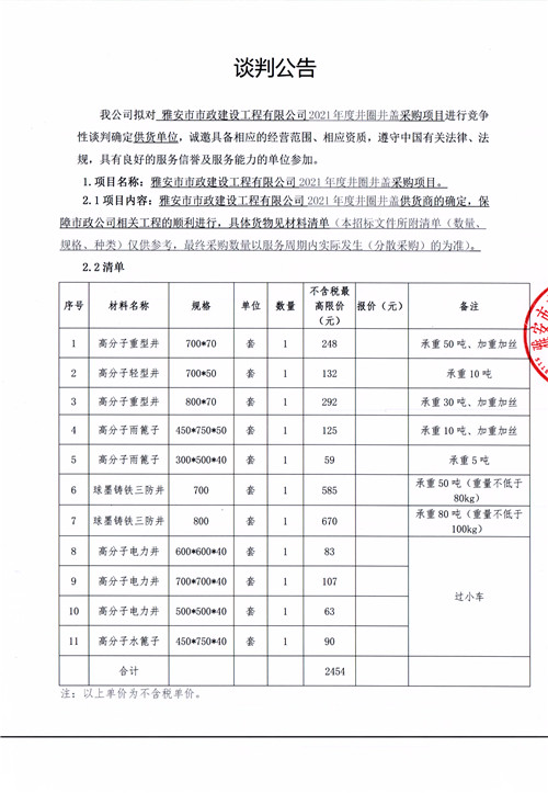 雅安市市政建設(shè)工程有限公司2021年井圈井蓋采購項(xiàng)目競(jìng)爭(zhēng)性談判公告