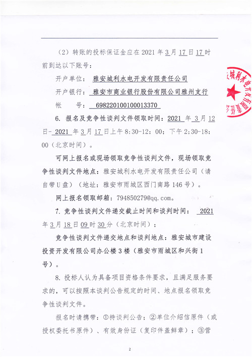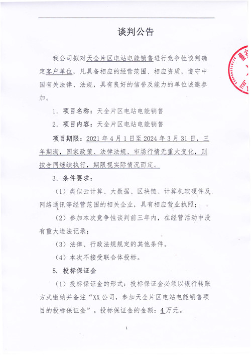 城投水電公司天全片區(qū)電站電能銷(xiāo)售競(jìng)爭(zhēng)性談判公告