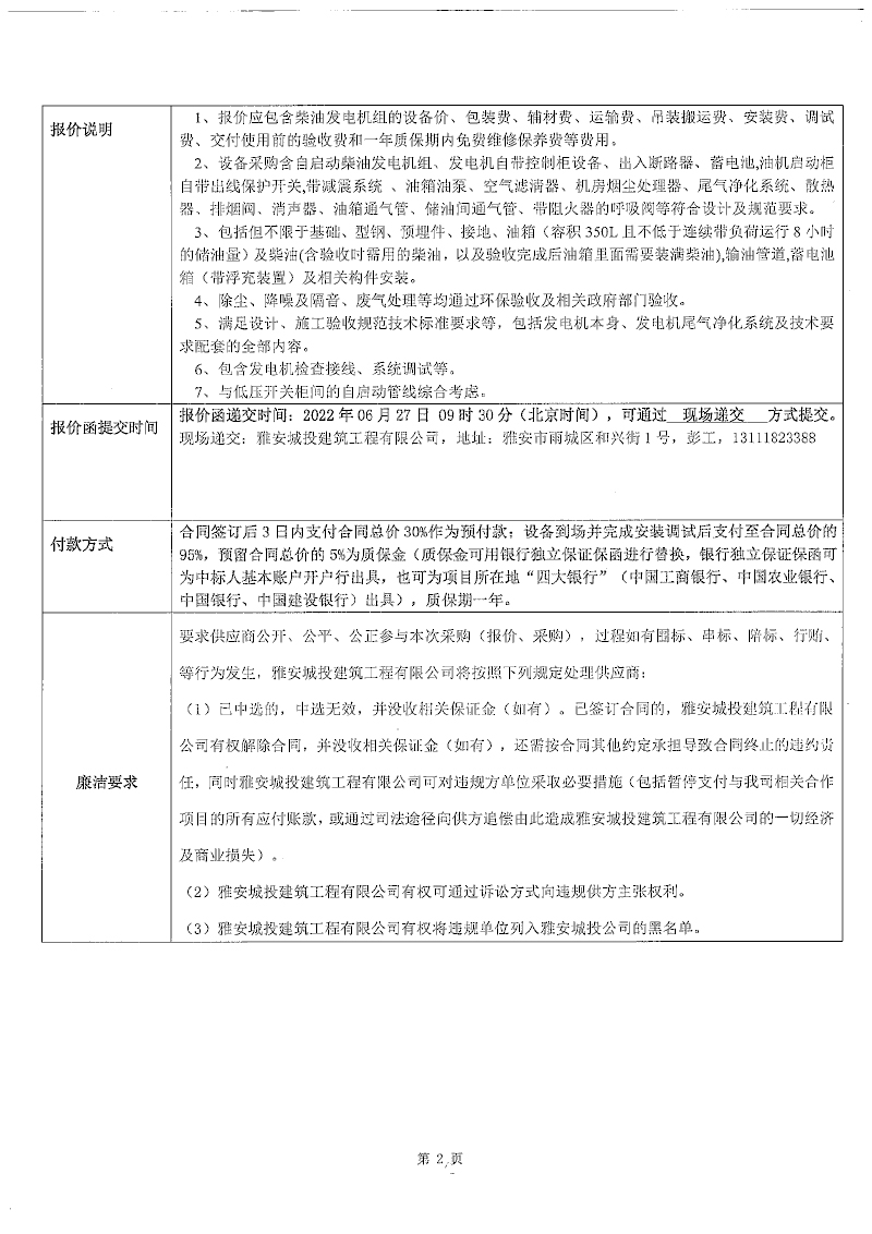 漢源縣城市智慧停車場及智慧充電樁項(xiàng)目一期漢源縣城人民銀行大型綜合樓停車樓建設(shè)項(xiàng)目500kw柴油發(fā)電機(jī)組設(shè)備采購競價公告