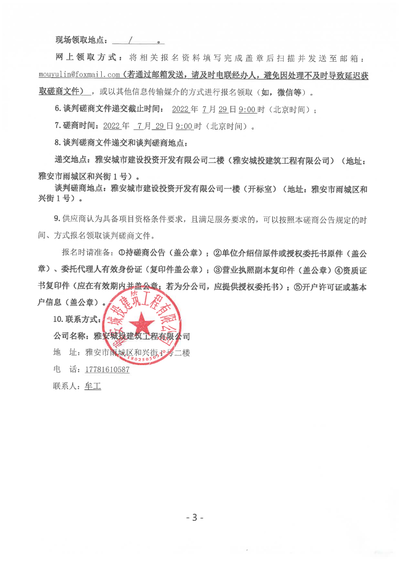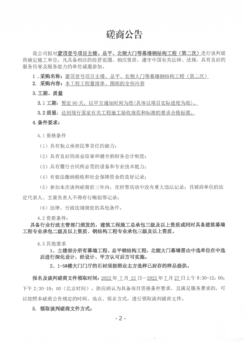 蒙頂壹號項目主樓、總坪、北側大門等幕墻鋼結構工程(第二次)談判磋商公告