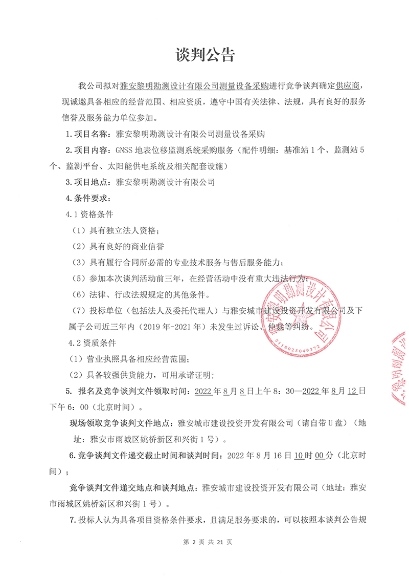 雅安黎明勘測設(shè)計(jì)有限公司測量設(shè)備采購競爭談判文件