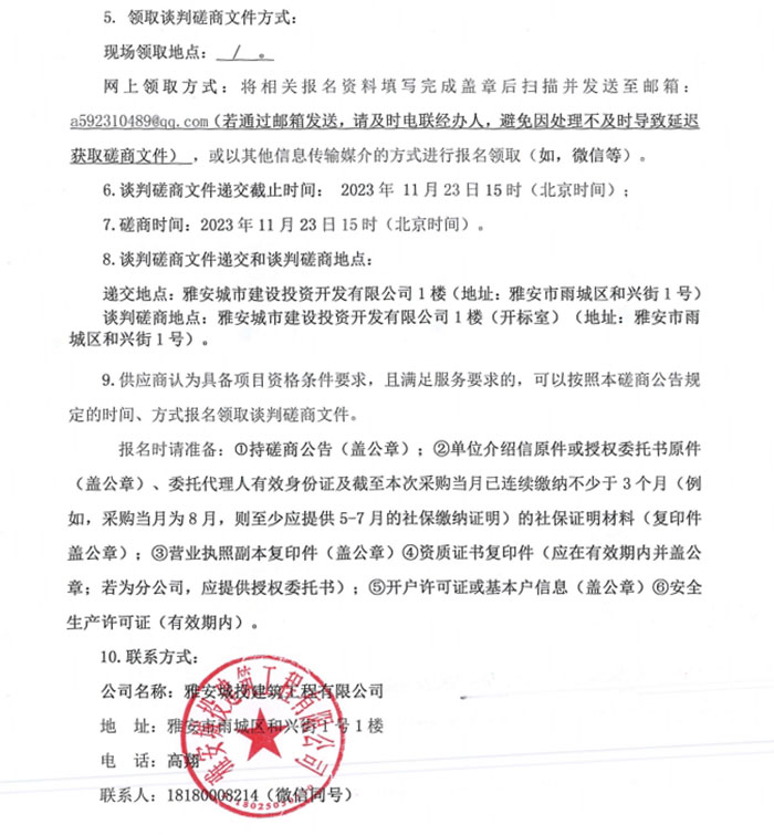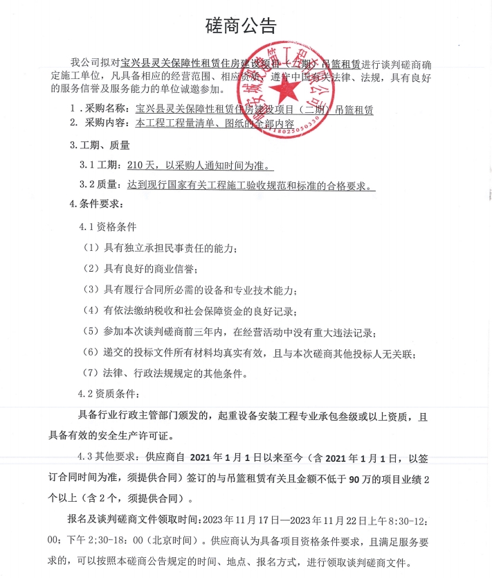 寶興靈關保障性租賃住房建設項目(二期)吊籃租賃談判磋商公告