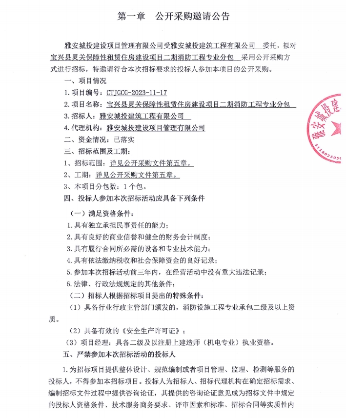 寶興縣靈關(guān)保障性租賃住房建設(shè)項(xiàng)目二期消防工程專業(yè)分包公開采購邀請(qǐng)公告