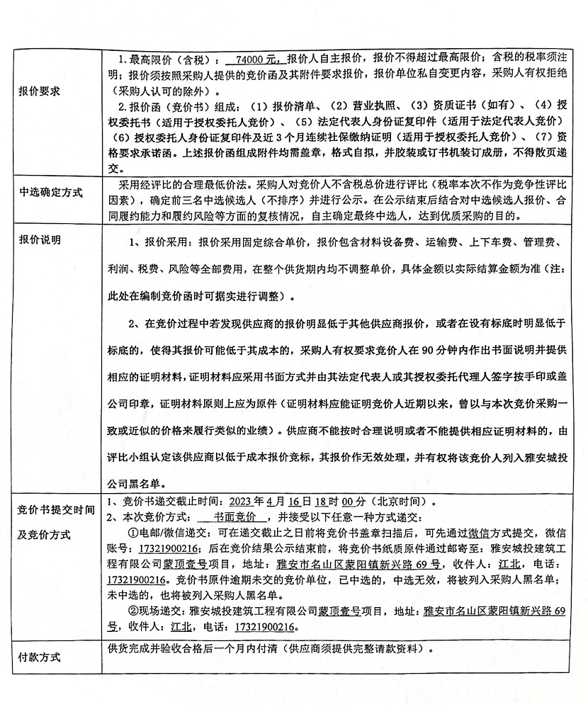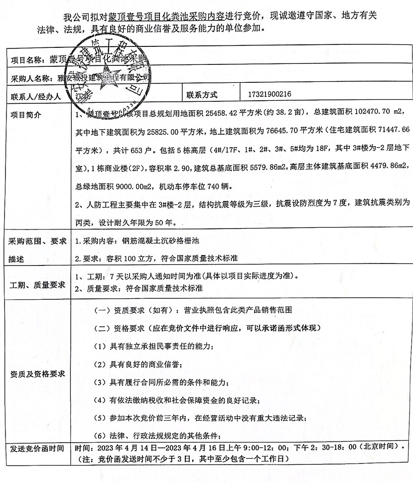 蒙頂壹號項(xiàng)目化糞池競價公告