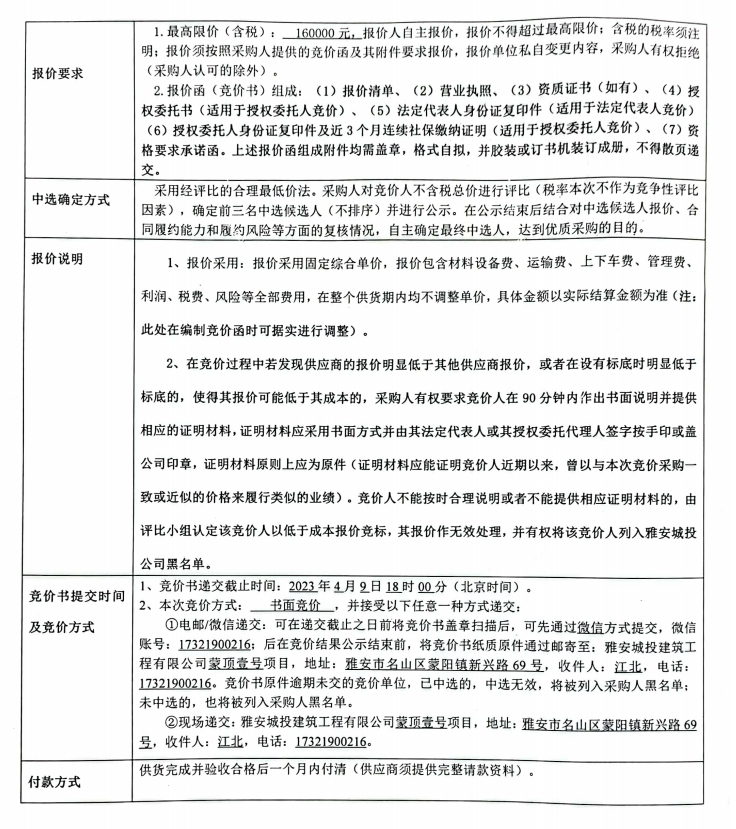 蒙頂壹號(hào)項(xiàng)目公區(qū)和地下室燈具采購(gòu)競(jìng)價(jià)公告