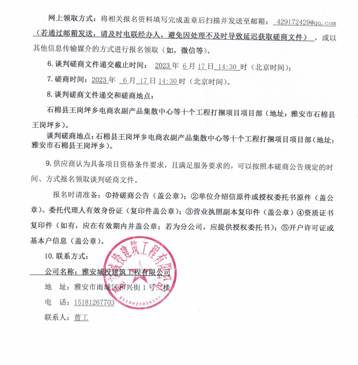 石棉縣王崗坪鄉(xiāng)電商農(nóng)副產(chǎn)品集散中心等十個工程打捆項(xiàng)目鋼管、扣件租賃談判磋商公告