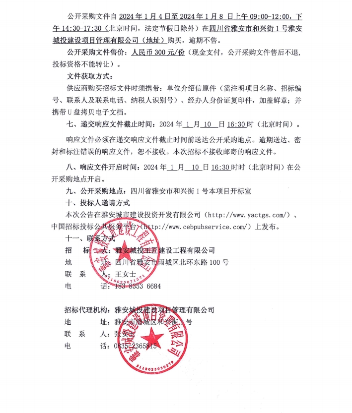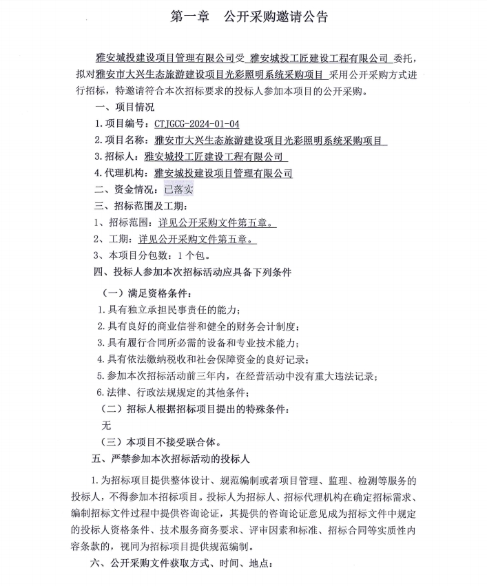 雅安市大興生態(tài)旅游建設(shè)項目光彩照明系統(tǒng)采購項目公開采購邀請公告