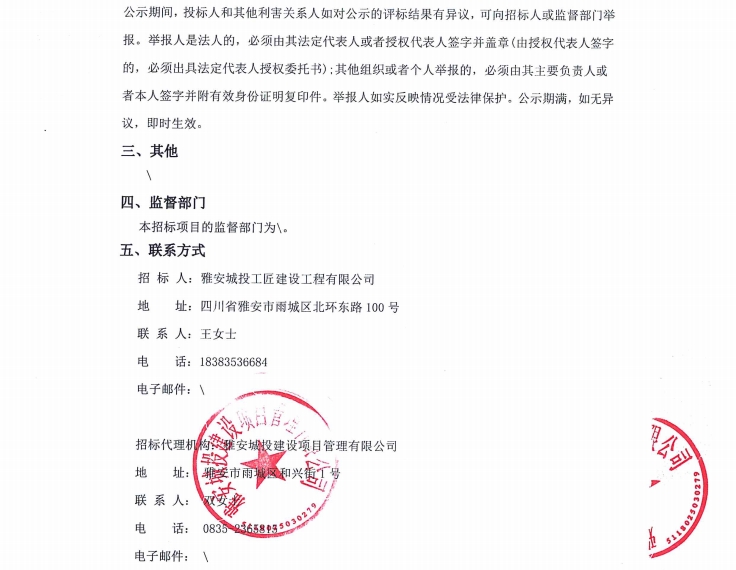 雅安市大興生態(tài)旅游建設(shè)項(xiàng)目欄桿采購(gòu)項(xiàng)目(第二次)中標(biāo)候選人公示
