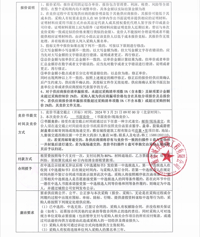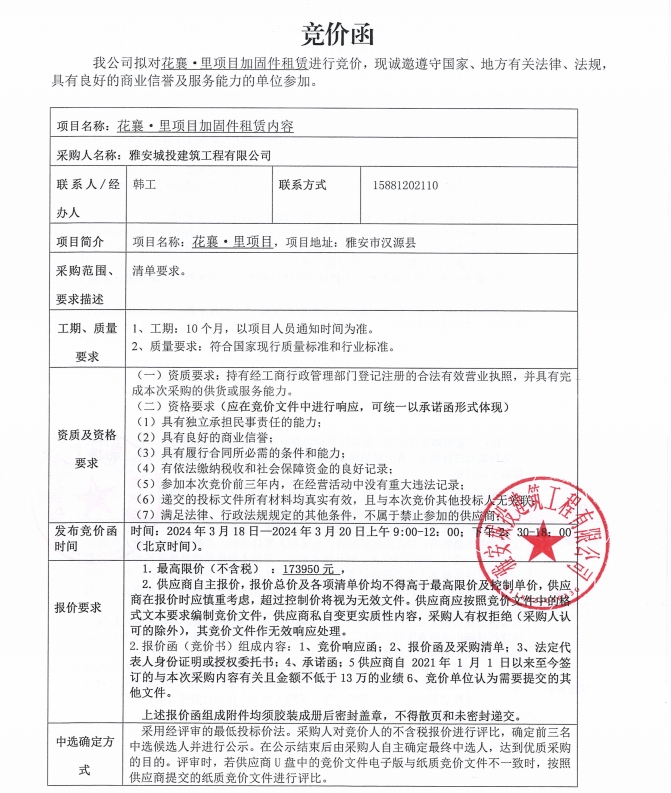 花襄·里項(xiàng)目加固件租賃競(jìng)價(jià)公告