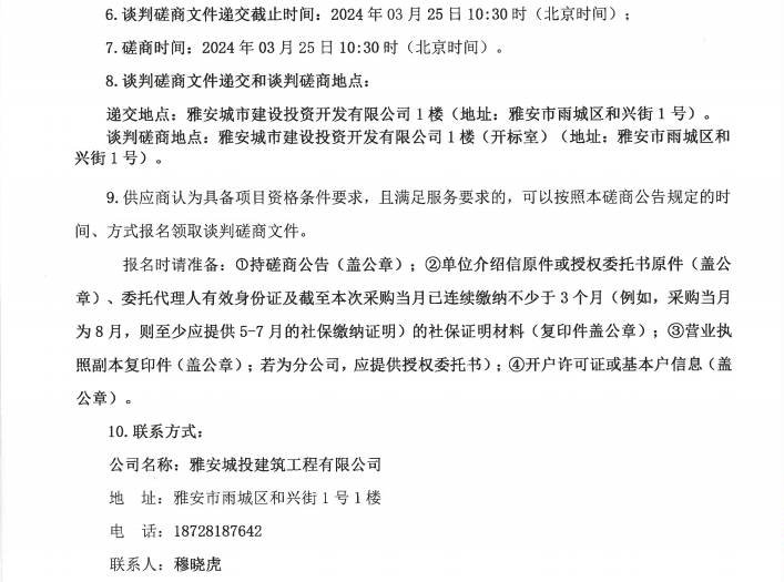 雅安城投建筑工程有限公司儲(chǔ)備項(xiàng)目土石工程、運(yùn)輸機(jī)械設(shè)備租賃采購磋商公告