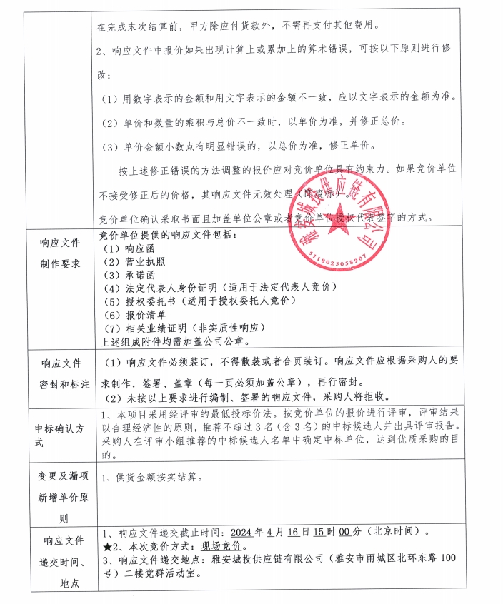 響應(yīng)文件格式(競(jìng)價(jià))