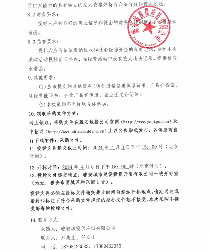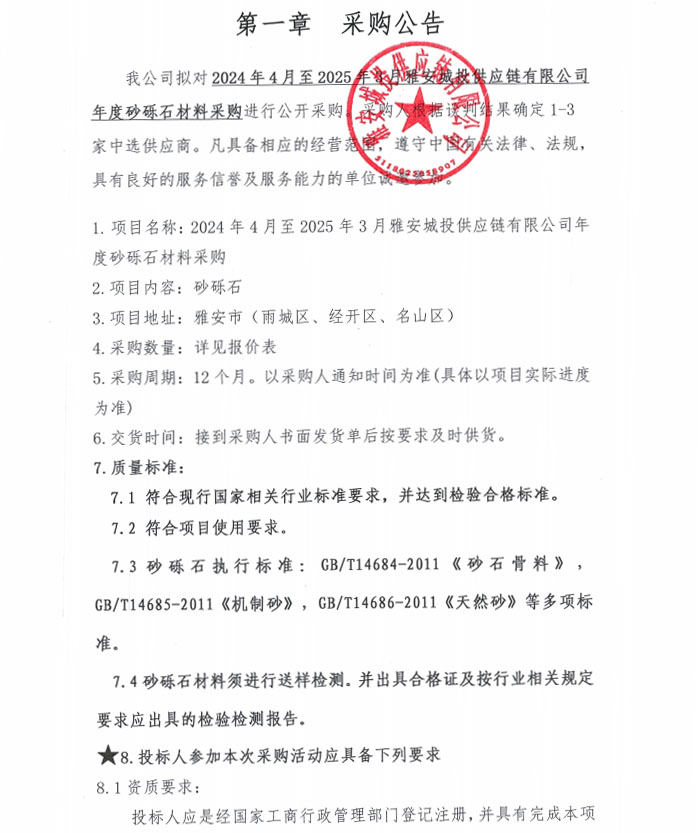 2024年4月至2025年3月雅安城投供應(yīng)鏈有限公司年度砂礫石材料采購公告