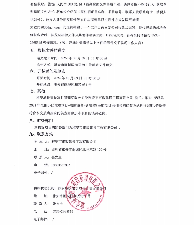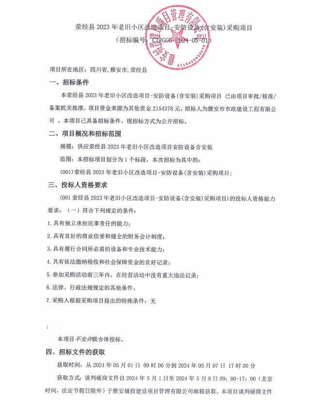 滎經(jīng)縣2023年老舊小區(qū)改造項(xiàng)目安防設(shè)備(含安裝)采購(gòu)項(xiàng)目公告