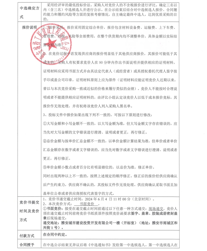 雅州壹號院售樓部及樣板間裝飾工程木工材料采購(第三次)競價公告