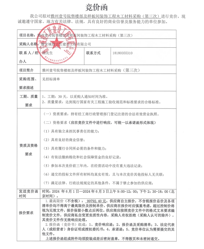 附件:競價函-木工材料采購-雅州壹號院售樓部及樣板間(第三次)