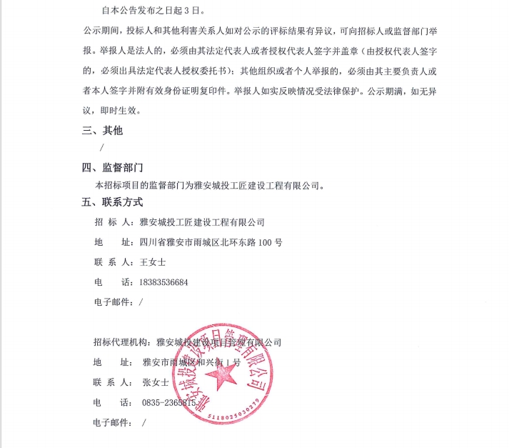 雅安市大興生態(tài)旅游建設(shè)項目電梯采購安裝(第二次)中標候選人公示