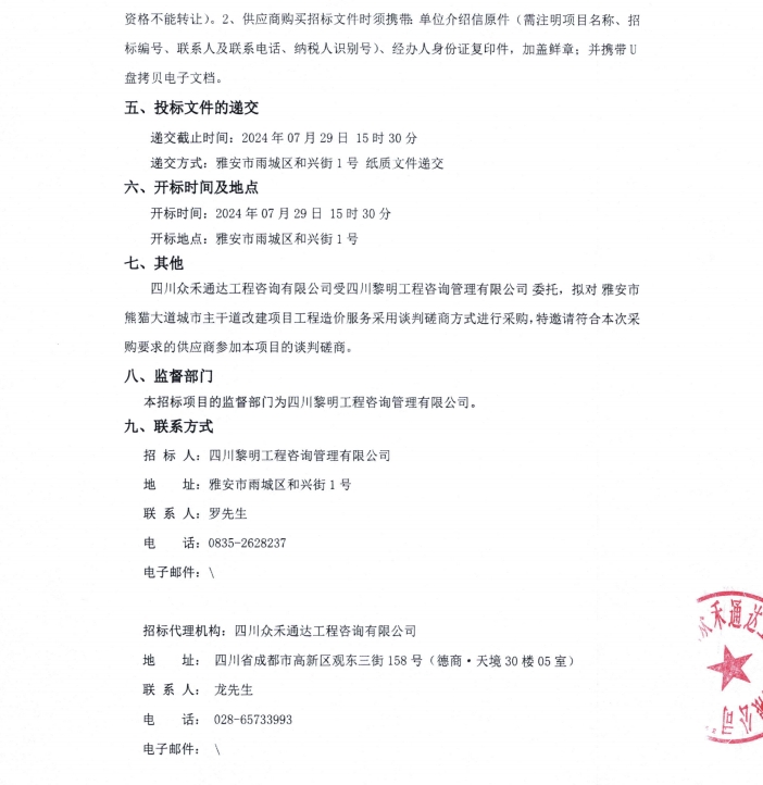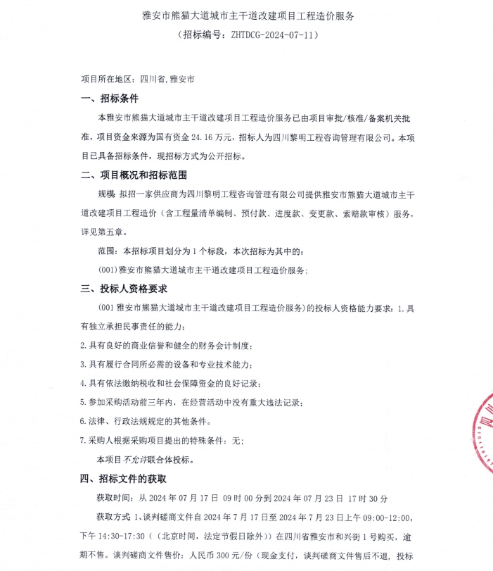 雅安市熊貓大道城市主干道改建項(xiàng)目工程造價服務(wù)公告
